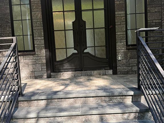 Natural stone exteriorOversized quartz waterfall islandExpansive private yardPrivate bedroomCustom double iron doorsWalk in closetWalk in closets