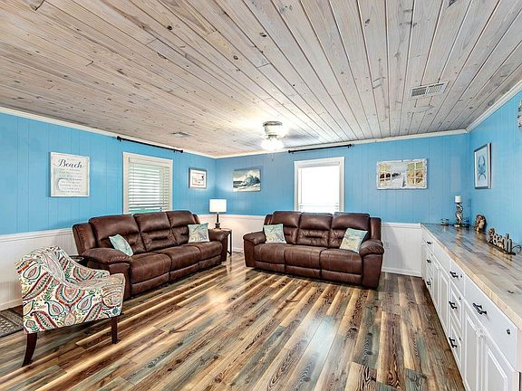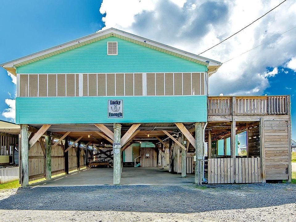 This home is move in ready. The spacious open floor plan for the living dining and kitchen is great for entertaining. With 4 bedrooms and 4 bath to accommodate lots of family and friends. The screened in porch is great place for enjoying outdoor living. There is full outdoor kitchen complete with gas stove, fridge, dining table and tv. Nice open deck for barbques and enjoying the sunset. On ground level is fish cleaning table and outdoor showner also a full bath with shower. Easy access to the beach with golf cart crossing directly across Hwy 1 on Apple right of way.