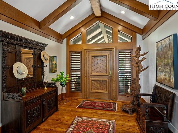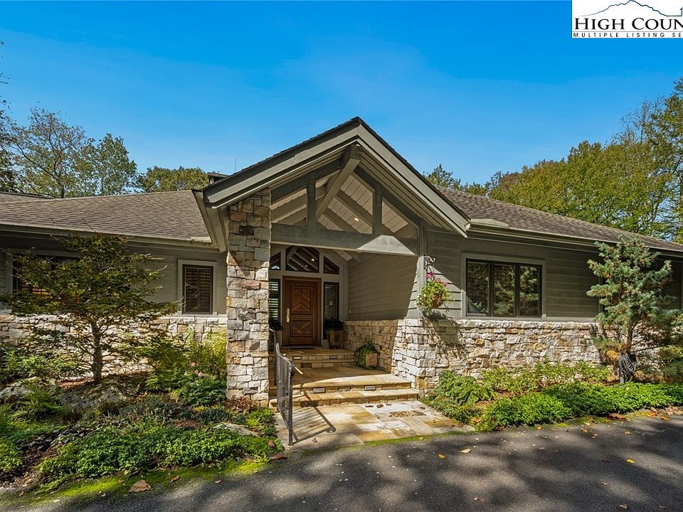 Welcome to 171 Balsam Rd. within Grandfather Golf & Country Club, a rare one-level home on a double lot with a serene mountain view! This immaculate home flows beautifully, a stunning mountain property with almost 4500 square feet of living space. The four spacious bedrooms have en suite baths, plus there is an extra sleeping nook and an additional full bath adjacent to the den/family room. The sunny primary suite features a truly remarkable bathroom with custom, built-in cabinetry and two large walk-in closets. The large, gourmet kitchen features a TX mesquite wood island and breakfast area. The space flows effortlessly to the dining area and the elegant-yet-cozy living room in this light-filled open-concept home. This stunning room features a peaked ceiling, floor-to-ceiling stone fireplace, a wet bar, and windows galore. Hardwood flooring throughout the home with tile baths. The covered porch with ipe hardwood decking is a true show-stopper. This is a true outdoor great room with stone fireplace! The property offers true tranquility, on approximately 1.83 acres with large stands of rhodendron, mature vegetation, and extensive landscaping, including a rare yard! The garage is a spacious 2-car, with a workshop/storage room. The impressive crawlspace has been sealed by vapor barrier. The home is being sold furnished with everything you will need to start enjoying the home immediately. Bring your toothbrush and spend the holidays at 171 Balsam! Do not miss seeing this rare Grandfather gem!
