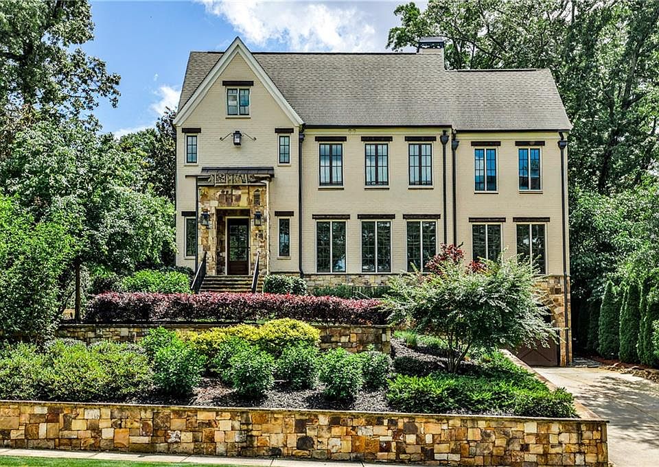 This elegant traditional/transitional home, with an elevator servicing all four floors, seamlessly blends timeless architecture with smart home modern convenience. The welcoming foyer leads to an open, yet distinct, floor plan featuring a spacious living room w coffered ceiling and a fireplace--all overlooking a flat-walkout backyard with covered patio, grilling station, stunning saltwater pool and one bedroom, one bath guest house-- perfect for guests, in-laws or au-pairs. The cooks kitchen, with oversized island, top of the line Wolf and Subzero appliances, informal eating area and walk-in pantry, overlooks both the living room and the private backyard and the formal dining room seats twelve. A private home office, guest bedroom with ensuite bath and powder room complete the first floor. The second level is home to a luxurious master suite, with a spa-like bath and a room-sized closet. Three additional bedrooms, each with their own ensuite baths, complete this floor. The third floor is the "fun floor" with a comfortable sitting area, media room, wine storage, kitchenette and a balcony with stunning views of the midtown skyline. A two car attached garage leads into the lower level, ideal for fitness and function with an anteroom leading into a separate fitness room, a half bath and lots of storage. This well appointed home, in one of Atlanta's premier neighborhoods, is definitely a "must see".