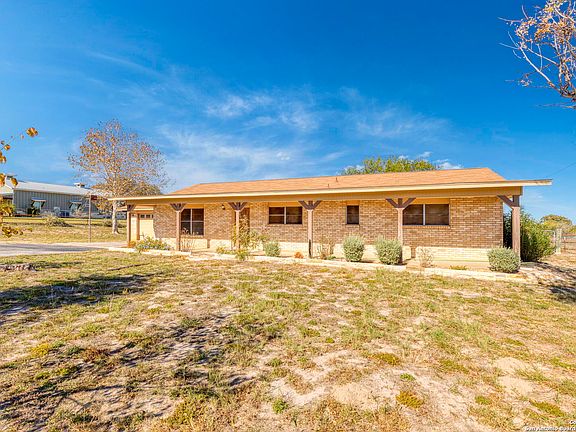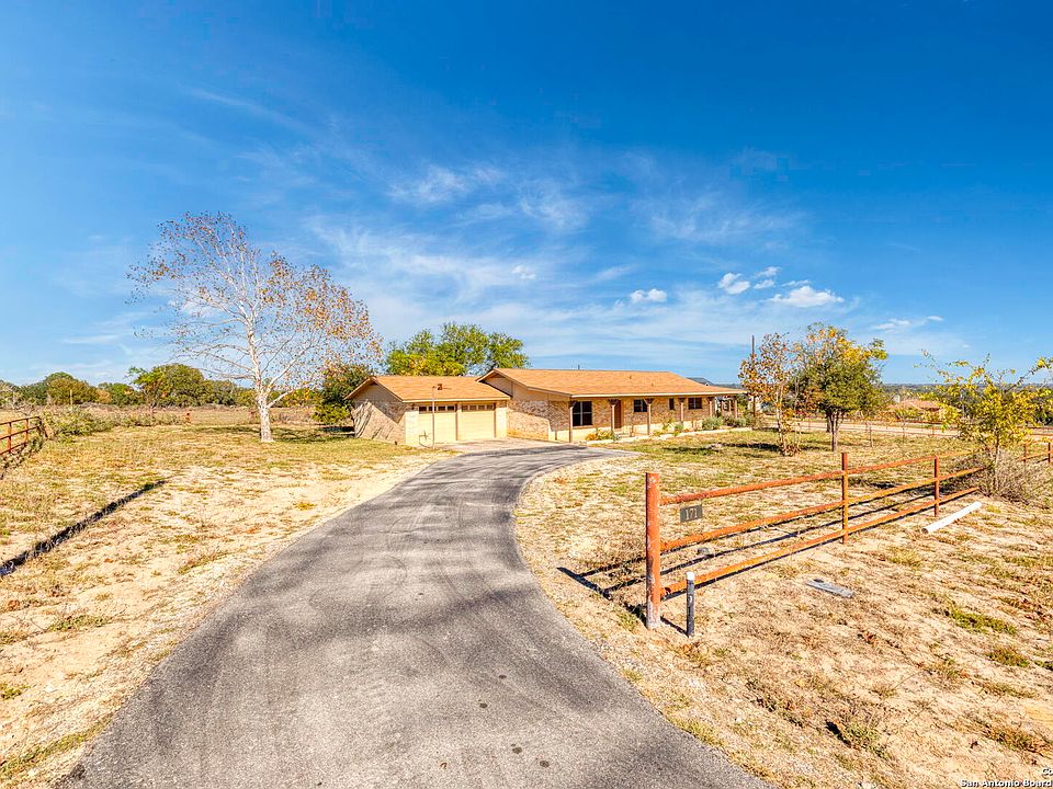 Come Discover this Picturesque Country Estate! Situated on 2 acres with No mandatory HOA, the all-brick home features a full-length front porch, expansive covered back patio, and an attached 2-car garage! Public water provides for the home, and there is also a water well which has not been used in many years - not currently functional. A substantial feature is the new septic system, just installed in November 2025! Inside, you'll appreciate recently updated wood-style flooring throughout the generous living room, the open dining & kitchen w/breakfast bar, and the 3 roomy bedrooms! The master retreat offers a spacious closet & dedicated bath, and the sizable hall bath features a large walk-shower. Don't miss the great laundry room! The property features pipe fencing across the front plus cross-fencing to create a backyard space (ideal for young ones or pets), with wire fencing along the perimeter of the 2 acres (great for livestock). Enjoy the amenities of the La Vernia community, offering a rural atmosphere with city conveniences just a short drive away ... and Fiber Optic Internet available. This established family home is ready to become your country haven!