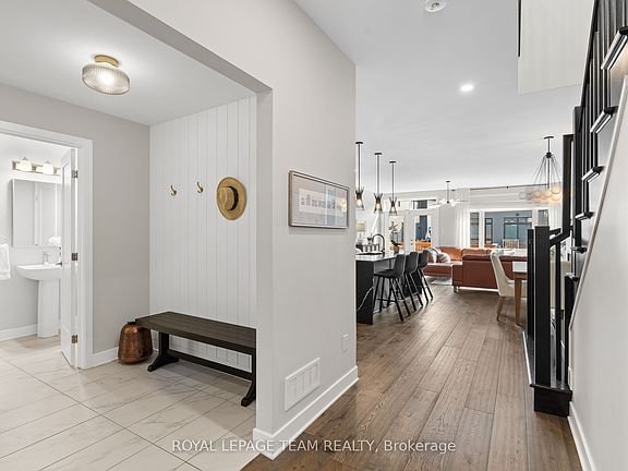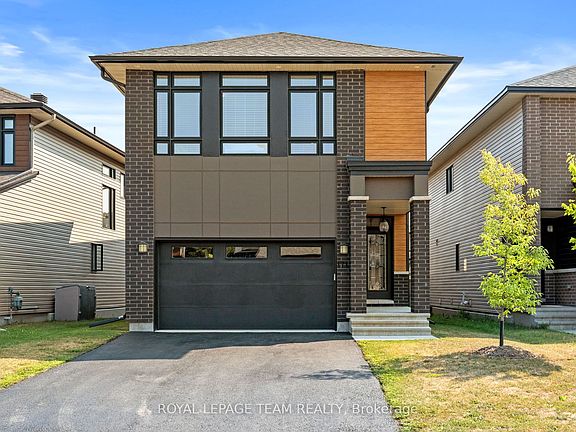 Set within the Creek neighbourhood of Kemptville, this move-in ready home is just moments from retail amenities, Kemptville Creek, the Highway 416 corridor, and the natural spaces of the Ferguson Forest Centre, which features beautiful trails, a dog park, an arboretum, and recreational areas. Step inside to discover a well-designed floor plan offering an open connection between living spaces. Highlights include three bedrooms, three bathrooms, a finished lower-level recreation room with a custom wet bar, and a flexible office. The main level is bright and inviting, featuring an open-concept design, seven-inch wide plank flooring, and a living room warmed by a natural gas fireplace. The kitchen impresses with gorgeous cabinetry, a striking waterfall island clad in nine-foot Marquina quartz, and a pantry for additional storage. Upstairs, each bedroom includes its own walk-in closet. A convenient laundry room and two full bathrooms complete the second level. The large primary bedroom features a spa-like five-piece ensuite with a dual sink vanity, separate shower, and a relaxing freestanding bathtub. Outside, the fenced backyard highlights a deck and patio, ideal for relaxing or entertaining. Additional benefits include R-2000 Certified construction, ensuring enhanced comfort and energy efficiency.
