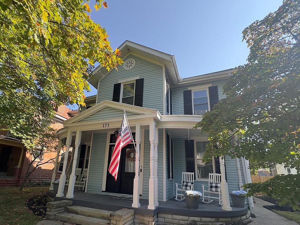 Step into timeless elegance with this beautifully maintained home built in 1893, just minutes from the heart of downtown Chillicothe. This two-story gem blends 3,132 sq. ft. of vintage charm with modern comfort. The main level welcomes you with 2 living rooms, a theater room, a spacious kitchen featuring double ovens, walk-in pantry and a large island. There are conveniently 1.5 bathrooms on the main level as well. Upstairs, you'll find four large bedrooms, two full baths, and the laundry room. Original natural woodwork, stunning stained glass windows, elegant pocket doors, and four fireplaces speak to the home's rich history. Enjoy time relaxing on the wrap-around covered front porch, on the rear screened in porch, or spend time outdoors on the patio in the fenced backyard. A small shed with electricity offers flexible space for hobbies or a workshop. This is more than just a move-in ready house, it's an opportunity to own a piece of Chillicothe's history with the comforts of today.