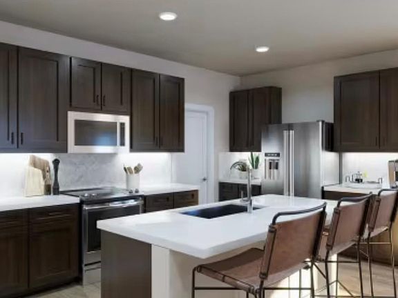 The Jaya plan features three bedrooms, two bathrooms and a dedicated office, offering 1,904 square feet of well-designed living space. The open-concept layout allows for easy movement between the kitchen, dining and living areas, while the primary suite includes a roomy walk-in closet and private bath.
