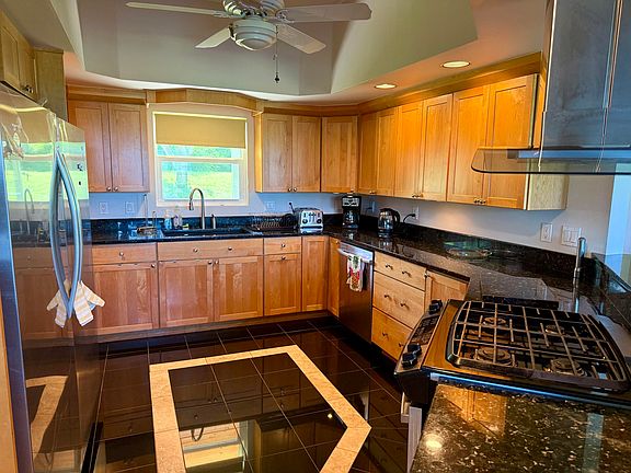Direct buck island viewFrench doorsFenced yardLots of cabinet spaceLarge kitchenStainless steel appliancesBlack granite countertops
