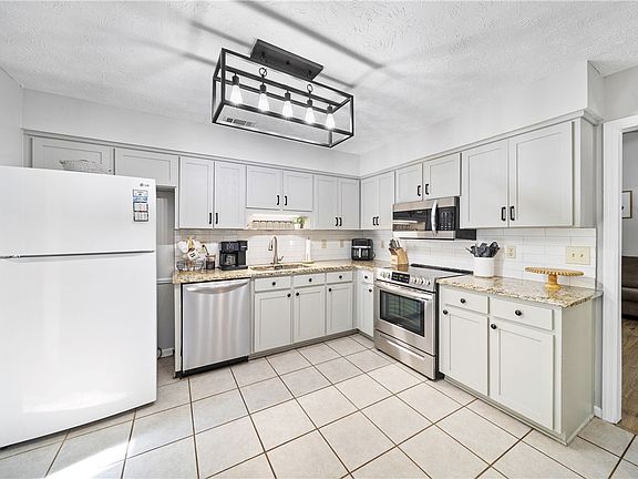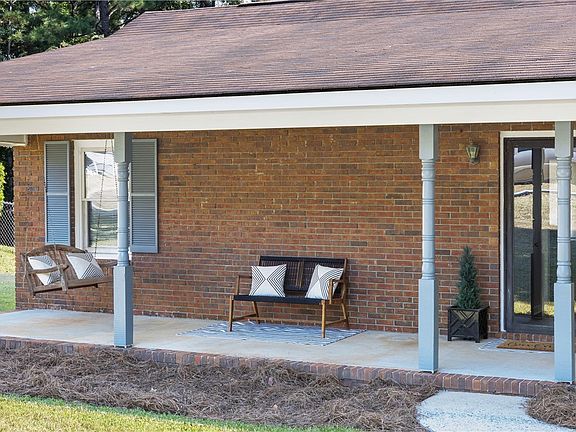 Enjoy your morning coffee on the covered front porch, then step inside to discover a spacious layout featuring a split-bedroom floor plan for added privacy. The updated kitchen, completed in 2022, includes stainless steel appliances, modern cabinetry, and ceramic tile flooring, perfect for everyday cooking and entertaining.The living room is warm and inviting, showcasing new LVP flooring and a charming wood-burning fireplace. A bay window overlooks the sparkling inground pool, adding natural light and a relaxing view. The large laundry room provides extra space and convenience. The primary suite offers a walk-in closet, a freshly painted en-suite bath with new flooring, and a tiled tub surround. Secondary bedrooms are located on the opposite side of the home, ideal for families or guests. All bedrooms have ceiling fans. Step outside to your private backyard retreat, featuring a refreshing inground pool + the half acre lot has more room to play, entertain, or relax, and a storage shed that stays with the property. Additional updates include a new roof and HVAC system (2019), offering peace of mind for years to come. hot water heater and pool linear installed in 2022.