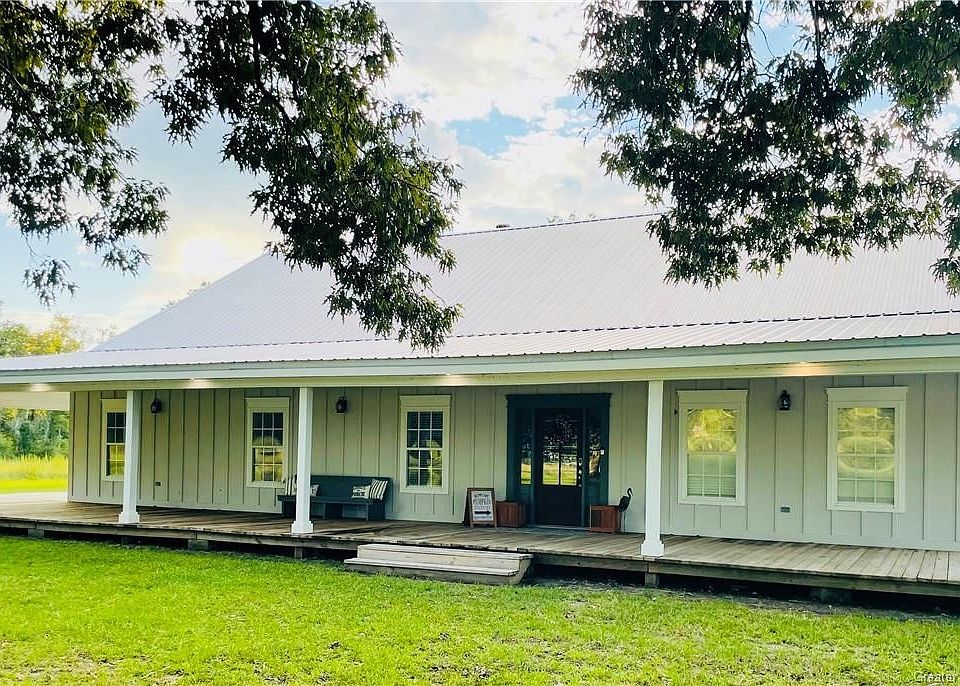 Seeking serenity on earth? Discover it here! This Acadian style farmhouse, boasting a wrap-around porch features 2800 sq ft living - 4 bedroom and 2 full baths, situated on 9.2 cleared and usable acres in flood zone X. This home was originally built in 2005 with rough cut lumber. It was meticulously rebuilt in 2021 after Hurricane Laura leaving rough cut studs and slab original. All upgrades comprise, but are not exclusive to, a custom 2 vehicle carport with breezeway and expansive cement parking area, HVAC, sheetrock, insulation, 2021 roof and porches, fixtures, neutral colors throughout, quartz countertops, a newly installed custom kitchen with Frigidaire fridge and freezer, and numerous additional features. The screened-in porch provides a peaceful space to unwind after a long day or savor a fresh cup of coffee to start your morning. A spacious 11x14 storage room is located on the back screened porch. This house offers an exceptional amount of space and is a MUST SEE!! Schedule your showing today! All measurements are M/L. OWNER/AGENT