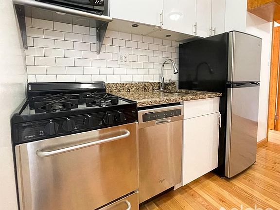 Completely renovated featuring modern finishes throughout the entire unit. Two bedroom apartment, both with closets and large enough for queen sized beds. Modern kitchen with modern LED lighting, new countertops, dishwasher, and stainless steel appliances. Can accommodate a kitchen table. Bathroom is also completely newly renovated with modern finishes and LED lighting.