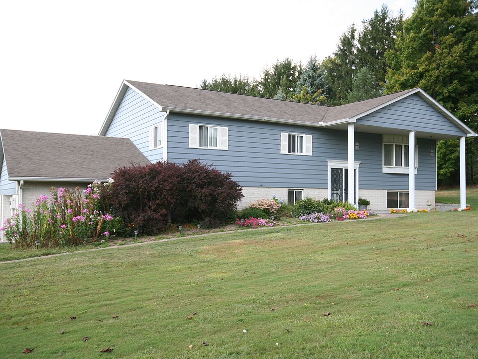 Well maintained and very large 4 bedroom, 2 bath with outstanding views on a 8.4 acre parcel. 1/2 mile to rt 81 for easy access. Finished lower level with huge stone fireplace, central Vac, whole house fan, updated kitchen. Large deck. Oversize 2 car garage. Large 2 story storage shed