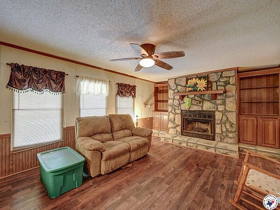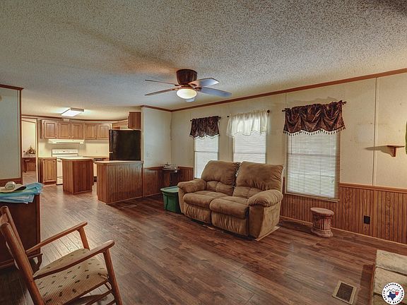 Tranquility Meets Comfort on 6.65 Acres! Step into peaceful country living just beyond the city limits with this spacious 3-bedroom, 2-bath double-wide nestled on a beautifully shaded 6.65-acre tract. Thoughtfully designed with a split floor plan, this home offers multiple living areas including a formal dining room, cozy den with fireplace, and a private master retreat perfect for comfort and space for everyone. Enjoy serene afternoons by your very own stocked pond, tucked away at the rear of the property for quiet relaxation or casting a line. For hobbyists, collectors, or those with equipment, the on-site workshop is a dream come true ideal for storage, projects, or tinkering. The home has been well maintained over the years and, while it may be a touch dated, it's solid, clean, and move-in ready. All-electric utilities and your own private water well make living here efficient and affordable. Whether you're looking for your forever homestead, a weekend escape, or room to roam this property offers the perfect balance of modern comforts and rustic charm.