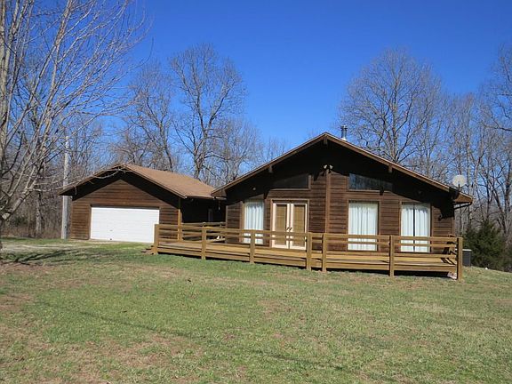 Nice cabin on 7 acres in ozark, Lots of trees wet weather spring. Two bedroom two bath two car detached garage. Nice open floor plan. Big front porch. Lots of wild life. Home is being sold as is, seller will make no repairs