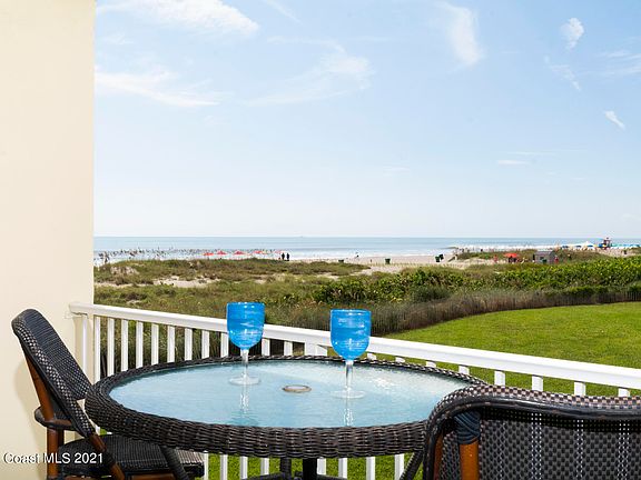 Direct Ocean Front, all rooms have a view of the ocean! Enjoy relaxing on your ocean front balcony! Brand New Windows & Sliders. 2 Bedrooms & full bath upstairs & living areas, balcony & 1/2 bath located downstairs, this is a 2nd FLR unit, Townhome in downtown Cocoa Beach, walking distance to restaurants, shopping & all the fun that downtown offers. Only 10 minutes to Port Canaveral, 2 miles to Cocoa Beach Country Club, golf course, tennis, Olympic size pool, all available for public use. Covered Carport & open guest parking.