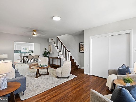 Step into this beautifully updated home, featuring newly refinished hardwood floors and a spacious open-concept main level. Wide windows fill the space with natural light, creating a bright and welcoming atmosphere. The living area flows easily into the dining room and newly renovated kitchen. The kitchen features shaker-style cabinetry, quartz countertops, a modern backsplash, and new stainless steel appliances. Just off the dining room, a convenient half bath adds functionality to the main floor. Through the rear door, steps lead down to the yard and out to the driveway, which offers parking for two cars. You can also access the lower level from the rear yard. Upstairs, you’ll find three nicely sized bedrooms, each with ample closet space and large windows that fill the rooms with natural light. The full bathroom includes a skylight, vanity with storage, and a tub-shower combo. It can be accessed from both the hallway and the primary bedroom, for convenience. The primary bedroom offers plenty of space and three closets for all your storage needs. The lower level features a partially finished basement with new LVP flooring, offering a flexible area for extra living space, a guest room, or a home office. The second full bathroom is located on this level. The unfinished section provides ample storage space and houses both the utility room as well as the laundry area. Located near tons of shops and restaurants, as well as 69th Street Station, this home is also near Market Street, giving you easy access into the city. Schedule your tour today!