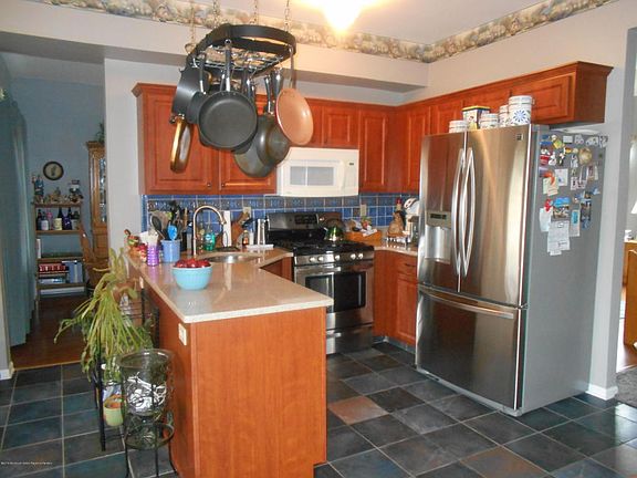 Lovely 3 Bedroom colonial in Santa Fe Junction! Open floor plan with soaring ceilings in Living Room. Engineered Hardwood floors in LR, DR, entry foyer & 1 Bedroom. Updated kitchen with classic cherry cabinetry, quartz counters and stainless stove & fridge. Newer ceramic floors in kitchen and front entrance hall. Master BR with walk in closet & full bath with Jacuzzi tub and stall shower. Anderson windows throughout most of home & custom blinds included! Parklike fenced backyard with paver patio and 3 zone sprinkler system front and back.Beautifully landscaped-a gardener's delight! Newer roof, furnace, hot water heater & central air. 2 car garage w/pull down stairs to attic storage. Nothing to do! Just move right in. Walk to NYC bus 2 short blocks. Short drive to Matawan train & Parkway!