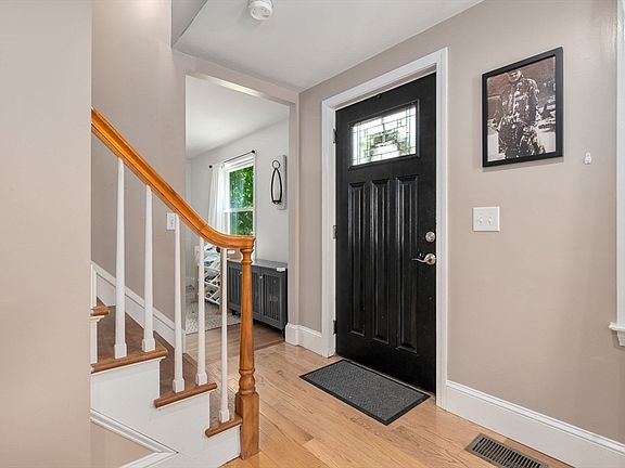 Classic Cape, wonderfully updated, just move in and enjoy!! The light and bright, open concept Kitchen and Living Room feature newer hardwood flooring, granite countertops, center island and picture window. Improvements have included windows throughout, Gas Hydro-Air heating system, Central Air, Full Bathroom and more recently recessed lighting and vinyl flooring, in the finished basement. From the mudroom there is access to the garage, house and large, fenced backyard including the newer stone patio for entertaining. This one is ready to go!