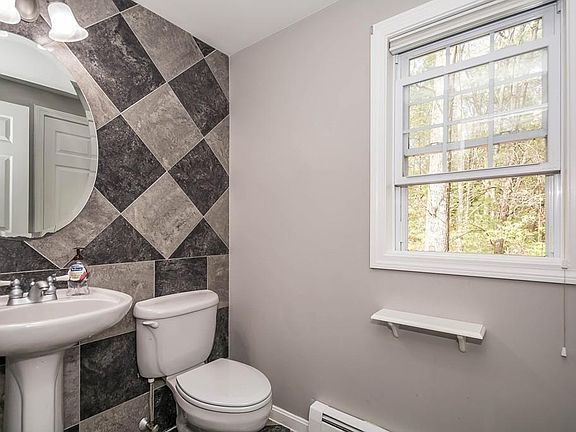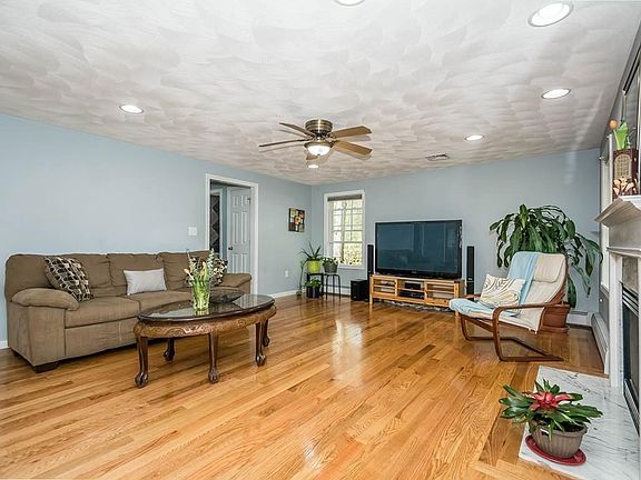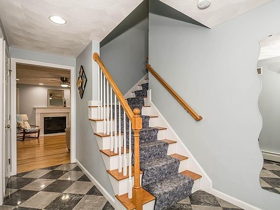 Perfectly situated at the end of the cul de sac abutting conservation land this bright young Colonial in every popular Tewkbury is sure to please. Wide open floor plan great for entertaining family & friends. A big plus also is low outside maintenance for manageable upkeep. Top of the line baths with porcelain tile. Gas log fireplace. Hardwood floors living room & kitchen, Slider out to private yard with woodland view. Master suite with private bath. 3rd floor finished 31X13 family room, playroom. 2nd flr laundry, Two car attached garage. C/A & vac. Convenient to shopping, transportation, and all major routes, and walking distance to library.