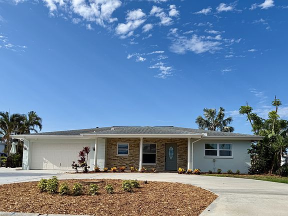 This fully remodeled waterfront home features 2 bedrooms, 2 baths, kitchen, dining, living, recreation/ sun room (or office), 2-car garage, covered screened lanai and expansive outdoor patio space.