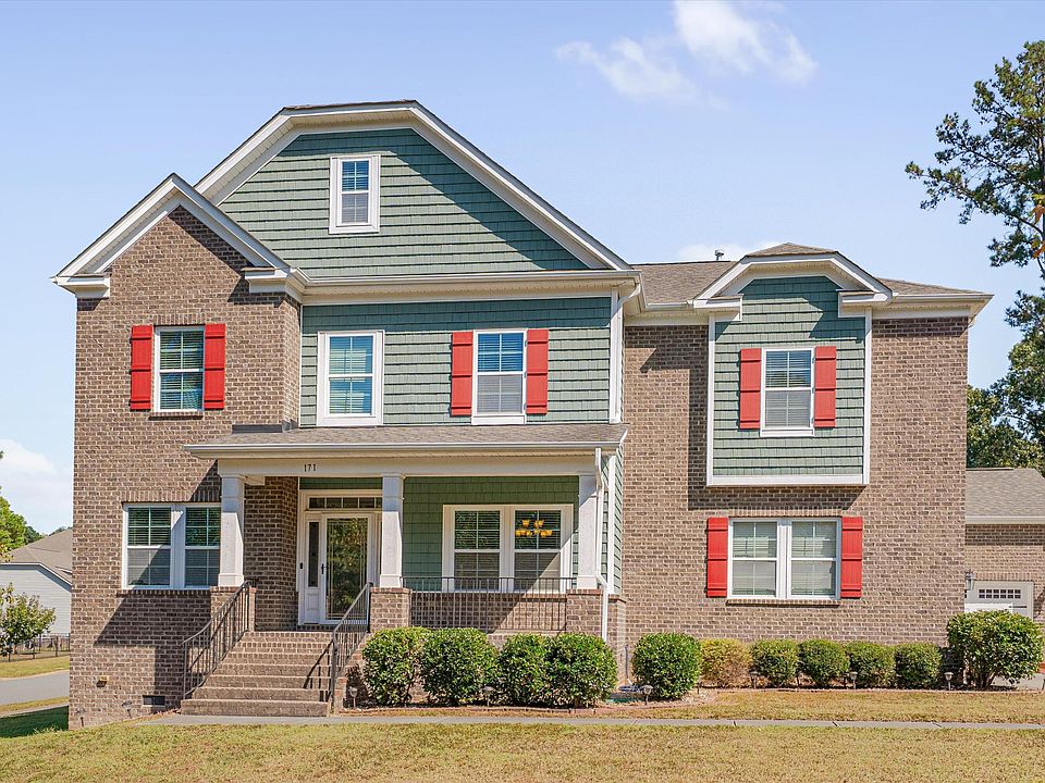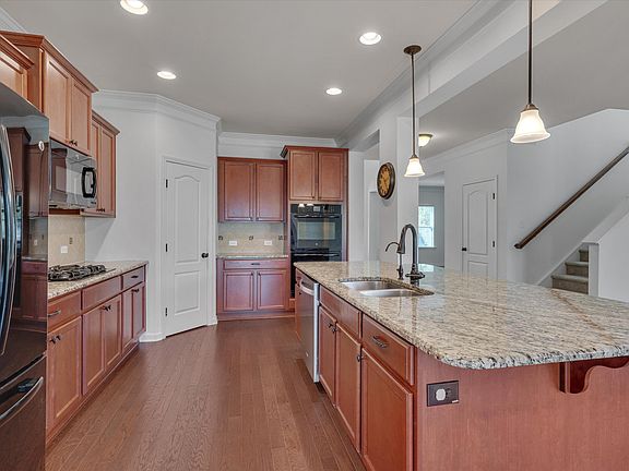 This stunning home sits on a private corner lot in a desirable neighborhood with large lots and beautiful neighborhood ponds- great for fishing! Just minutes from White Oak Crossing, RTP, Highway 540, 440, RDU, Airport, and top-rated schools, it's the perfect spot for busy families who don't want to compromise on location. Step inside and you'll find a bright and open, well designed floor plan. The main level offers formal dining room, a spacious living room/home office and a chef's kitchen with a large island, granite countertops and modern appliances—ideal for everything from weeknight dinners to weekend entertaining. The kitchen opens to the huge family room with a gas log fireplace, and a full bedroom and bath on this floor provide privacy for guests or visiting relatives. Second floor owner's suite is a true retreat with a spa-style bath featuring a soaking tub, separate shower, dual vanities, plus a generous walk-in closet. Three additional bedrooms, bonus room and a third-floor media room give everyone in the household space to relax, study or play. Screened porch and deck perfect for family cookouts, three-car garage offers plenty of room for cars, storage, and weekend projects. Well maintained and move-in ready!