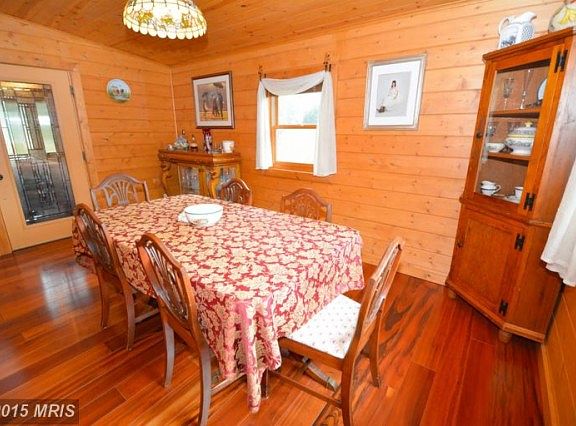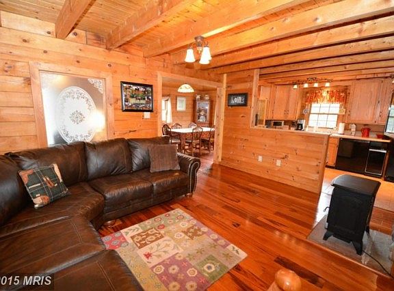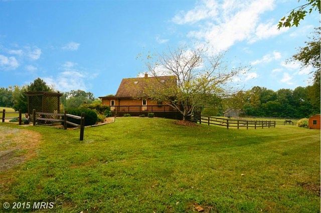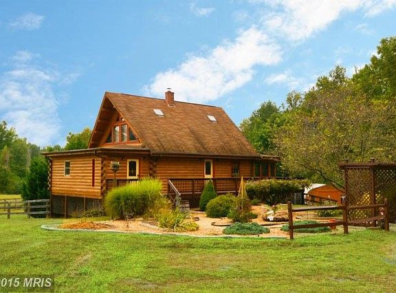 Custom built log home on almost 10 acres w/ recently added large barn and fencing for horses. Home has tons of character: wood walls, wood & ceramic tile floors, huge screened porch off of main level master, vaulted ceilings, sky lights, wet bar in large finished basement. Extensive landscaping. Stocked pond at rear of property. Sits well off road for privacy. Brand new HVAC and dishwasher.