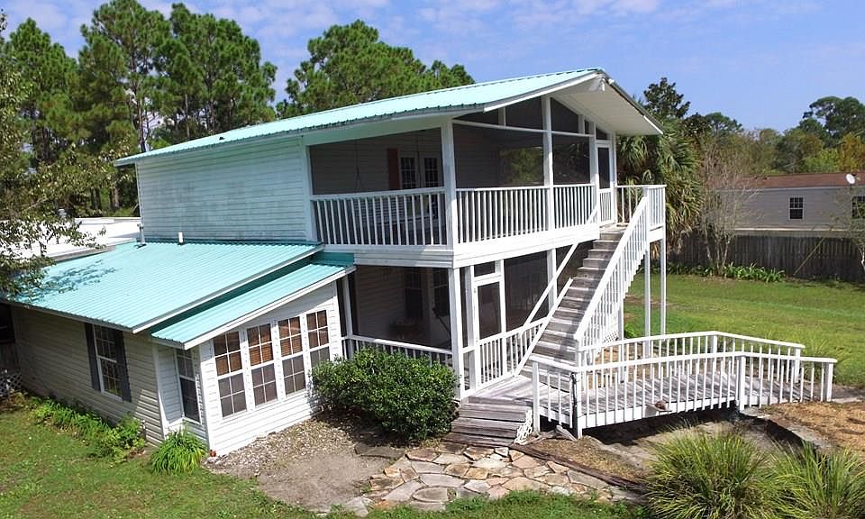 Large Home on Approximately 5 acres, on a dead-end road, close to the beach, St. George Island, and Apalachicola. Just a short walk to the beach south, and to the North this property borders Tate's Hell State Forrest giving you the best of both worlds. Private and secluded setting with boat storage, RV hook up, Large workshop, and separate 3 stall garage. 4 bedrooms, 3 baths, tile shower, jacuzzi tub, Large Master Bedroom, and Bath with a screened-in porch to enjoy your morning coffee. Living room with gas fireplace just steps to a screened-in porch to watch the deer graze. Fruit trees, with a landscaped area around the home, a small pond to the West end of the property. Unique property for a buyer who is looking for a peaceful place to live! Come see it today!!