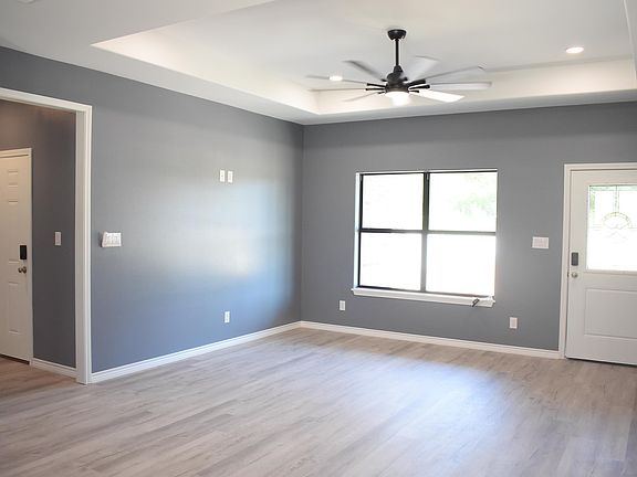 This brand-new 3-bedroom, 2-bath home with a 2-car garage offers modern comfort and thoughtful design throughout. Step into the open-concept living area filled with natural light and 9-foot ceilings that create a bright, spacious feel. The kitchen features a walk-in pantry and a great view of the backyard — perfect for everyday living or entertaining. Enjoy a split-bedroom layout for added privacy, plenty of storage, and a large utility room for convenience. Other highlights include waterproof flooring throughout, LED lighting, a generator transfer switch, and more. All sitting on over half an acre with a covered back patio — a great space to relax and enjoy the outdoors.