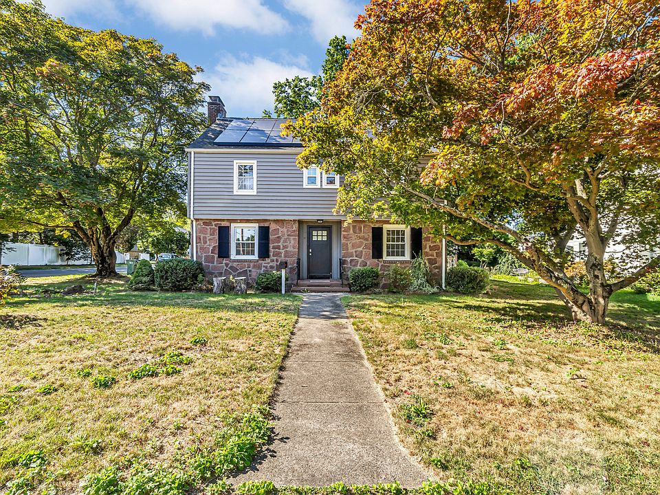 When pulling up to one of Hamden's sought-after Spring Glen neighborhood, you are immediately pleasantly surprised by the spacious level lot with plenty of space for entertaining guests while young ones play in the back yard. This house is welcoming from any angle you choose to enter, whether it be the oversized two car gages with Blue tooth activated automatic car openers, the heated sun room for kicking shoes off spending time working on the yard or for guests to enter through the front door. As guests enter they will be welcomed by a center-hall foyer that opens to a spacious family room with fireplace and built-ins, an ideal space to spend time indoors with friends and family through the colder months. The home elegantly flows through the formal dining room to a perfectly laid out kitchen accompanied with a breakfast nook. Perfect for many amazing mornings before school. The home features a flexible first-floor bedroom-ideal for guests or a home office-along with a partially finished attic and basement for extra living or creative space. Modern conveniences like central vacuum, an automatic garage door opener, and laundry on the lower level blend seamlessly with period character. Recent updates include newer roof, windows, electrical, and water heater, ensuring peace of mind. The exterior boasts wood siding, a two-car attached garage, and landscaped grounds perfect for gatherings.