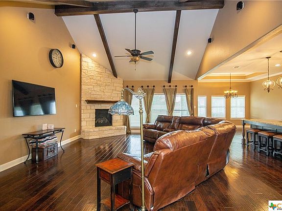 This immaculate Tuscan-styled, 3 Bedrooms, 2 1/2 Bathrooms home with a study on +/-1.32 Acres with sprinkler system is located in the sought-after Spring Ridge Subdivision! A gorgeous entryway with high ceilings and stained beams leads to a beautiful, spacious open concept living area with a cozy gas fireplace. An open concept kitchen with a bright breakfast/dining area, granite countertops, a fabulous hammered copper farm sink, beautiful cabinets, and a large island with a bar for extra sitting, is just perfect. The Master bedroom features gorgeous trey ceilings and a bathroom with double vanity, lots of linen storage, a large soaking tub, and a massive shower. The other two beautiful and spacious bedrooms have big closets and a Jack and Jill bathroom, with double vanity and plenty of storage. The outdoor covered patio includes a luxurious kitchen and plenty of room for entertaining. Don't miss this one! Try our 3D Virtual Tour and walk through the house using your device!