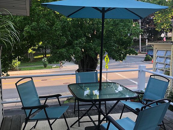 Big 2 bedroom with good size closets, one being a walk-in. Living room has high ceilings with a ceiling fan. 3 season sunroom with a roof deck off of it. Kitchen has granite countertops, maple cabinets, dish washer, garbage disposal, hanging microwave and plenty of room for a table. To add to the space there's a study/office or just an extra storage room! There's a washer and dryer in the unit. Off street parking for 2 cars. Asking first and last months rent. No smoking