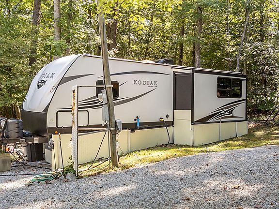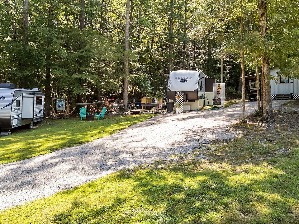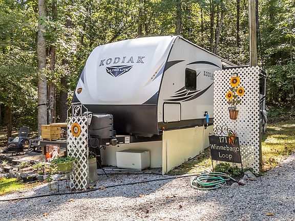 Discover a pristine 0.14-acre lot tucked away on a quiet private road within the gated resort-style community of Lake Royale. The property has been thoughtfully improved with not just one, but two campers. A spacious 2019 Keystone Kodiak (4 seasons camper), complete with its own septic system, serves as the primary retreat, offering a comfortable base for extended lake stays. Alongside it sits a 2019 Keystone Springdale, providing additional accommodations for family, friends, or guests. A detached storage building offers plenty of space for lake toys, fishing gear, and outdoor equipment, ensuring everything has its place and is ready when you are. With utilities already in place—including electricity (both 50 am and 30 amp service), water, and septic (2 bedroom)—this lot is completely turnkey, ready for your enjoyment from day one. Lake Royale is more than just a neighborhood—it's a lifestyle. Centered around a 345-acre lake and surrounded by over 3,000 acres of scenic woodland, this gated community offers endless opportunities for recreation and relaxation. Residents enjoy boating, fishing, and swimming, as well as access to sandy beaches, multiple boat launches, and docks. Amenities also include a swimming pool, tennis and basketball courts, volleyball, putt-putt golf, shuffleboard, horseshoe pits, and an outdoor fitness area. The lakeside clubhouse and open-air pavilion provide gathering spaces for community events and celebrations, while the nearby River Golf Course delivers a scenic 18-hole experience for golf enthusiasts. Life at Lake Royale is vibrant and welcoming, with activities from gardening and crafting to fitness groups and social gatherings. Located just 30 miles from downtown Raleigh, it offers the best of both worlds—peaceful lakeside living with convenient access to the Triangle's shopping, dining, and entertainment. With two modern campers, full utility hookups, and a detached storage building, this property is ready-made for lakeside living. Whether you're planning a weekend escape, entertaining guests, or envisioning a future homesite, 171 Winnebago Loop is your chance to embrace the resort-style lifestyle of Lake Royale.