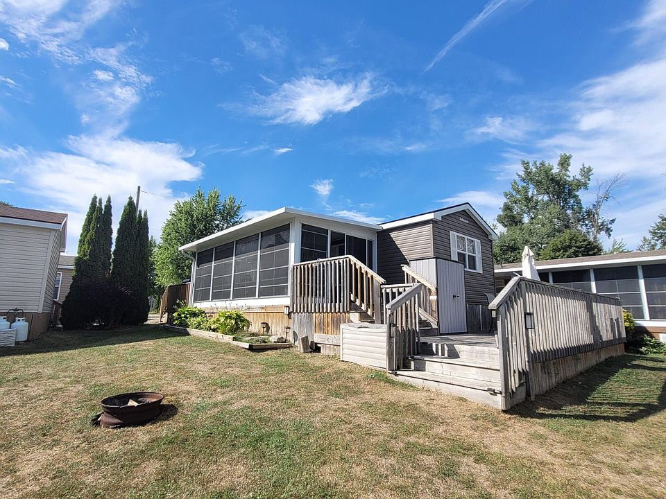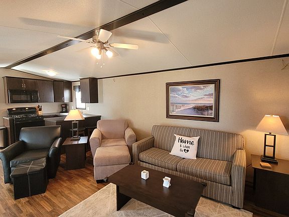 This 2015 Northlander Poplar is the perfect family getaway, offering stunning lake views without the premium cost of a direct lakefront site. Thoughtfully designed for young families, it features a charming bunk room with a cozy seating area which is ideal for board games, crafts, or an extra sleeping space when needed. Enjoy a spacious sunroom with stunning lake views and an extended sun-filled deck. Located directly across from the playground, pool, and boat launch, this cottage truly has it all. Move-in ready and fully equipped, it includes everything you need from kitchenware and bedroom/living room furniture to a dining table in the sunroom and even a fireplace. Just pack your suitcase and start making memories! *For Additional Property Details Click The Brochure Icon Below*