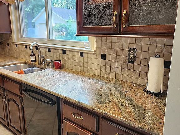 Downstairs: kitchen, breakfast room with adjacent dining room with access to a nice size deck. Dining room features a two way/see through fireplace with dining on one side and living room on opposite side. Living room has vaulted ceiling. Laundry room with bonus room across from galley style kitchen with access to attached garage.