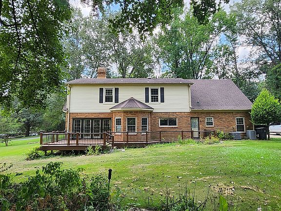 Two Story Brick home, 3 bedroom, 2 full bathrooms, a half bathroom near living room with attached 2 car garage on 1.58 acres, plus an additional workshop/garage with attic. Built in 1991, 2,434 gross living sq ft.