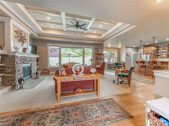 This stunning patio-style condo is well-maintained and is located on a corner. Featuring custom upgrades like tray ceilings & a gas fireplace with a stone surround in the cozy great room. The open concept kitchen boasts an abundance of beautiful cabinetry, granite counters, a farm sink, and stainless steel appliances. The luxurious primary suite comes with tile flooring, a walk-in (no step) shower, & a closet organizer. The well-designed floor plan provides separation of space between the bedrooms. Enjoy summer evenings on the covered patio. The property also includes a 2+ car garage. Gatherings are held in the common area, which features a covered gazebo & firepit. There is ample parking for owners and visitors. Don't miss your chance!