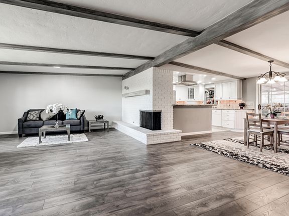 *******NEW REDUCED PRICE******* Agents who bring the buyer 2.5% This single-story home has been completely transformed into a beautiful masterpiece! It's been completely renovated from floor to ceiling & beyond! What was once outdated & lack luster in style is now a work of transitional art & aesthetic appeal! Massive amounts of natural lighting, 180-degree panoramic views. Step in the front door into your spacious living room w costume painted wood beams, brand new flooring, large window w tons of natural light & wood burning fireplace w beautiful custom floating mantel. Follow the white brick accent wall into a large dining area w brand new flooring industrial light fixture and breakfast bar. Enter your newly Remodeled Gourmet kitchen is a chef's delight, complete with beautiful 6 burner Gas Range Top by Dacor, Stainless steel Convection Microwave by Dacor, Stainless steel large oven by Dacor, large Stainless-steel refrigerator/freezer filtered water and ice maker by KitchenAid (included), stainless steel Range top hood by KitchenAid. Intricately designed wood cabinets w lazy Susan, hide-away dishwasher, back lit display cabinet, built in bread box w sliding door and large pantry. This kitchen also boasts plentiful recessed lighting, under cabinet lights, sliding shelves, hide-away garbage cans, plenty of space for your pots and pans & gorgeous granite counters. XL Bonus off kitchen accent wood beams, brand new flooring, center piece fire place ceiling fan w custom floating mantel, 2 skylights with an amazing skyline view. Remodeled hall bathroom with beautiful tile walls and floor, leather finished double sink counter, newer light fixture, brand new faucets in tube and sinks, Master Bedroom has brand new flooring and ceiling fan with a great panoramic territorial view. Completely remodeled master bath, floor to ceiling tile in shower w lighting, and granite counter top, and heat lamp. Spacious bedroom 1 and 2 with brand new flooring and ceiling fans. Other upgrades include new hall lighting, and flooring, electrical outlets and switches, Smart lock, outdoor solar lighting, epoxy garage floor, sprinkler and drip system.