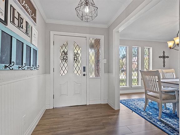 Welcome to 1710 Durfey Lane in Katy, TX – a beautifully remodeled 4-bedroom, 2.5-bath home on an oversized cul-de-sac lot with no back neighbors. Inside, you’ll find soaring cathedral ceilings, expansive windows, and wood-look flooring throughout the main living areas. The updated kitchen shines with custom cabinetry, granite countertops, a wood-accent ceiling, and all-new stainless steel appliances. Bathrooms, remodeled in 2020, feature quartz counters, new cabinets, and upgraded fixtures.