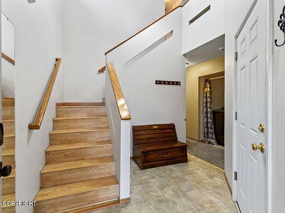 Open and bright home tucked into a cul-de-sac in central location minutes from the New Seward Highway. Upstairs is dining, living, kitchen w/pantry, bedroom with oversized closet. Downstairs family room, two bedrooms and bathroom. Opens to southern facing fully fenced back yard. Long driveway plus RV parking and room to park Alaska toys.