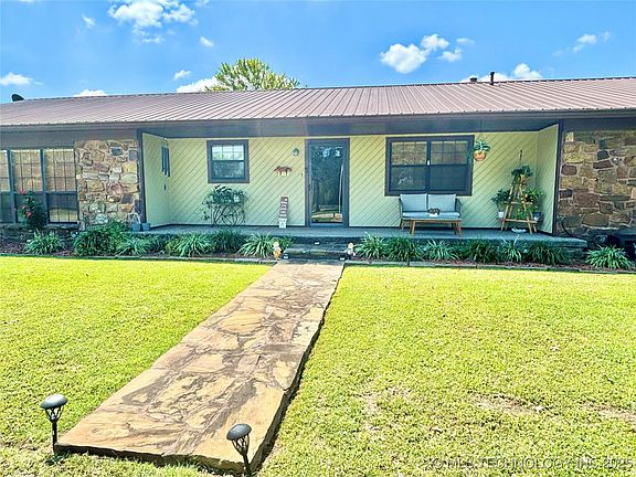 Introducing a beautiful three-bedroom, one and a half-bath home located just minutes away from Lake John Wells in Stigler. This ready-to-move-in home offers convenience and comfort for you and your family. As you approach the property, you'll find a circle drive and a three-bay carport, providing ample parking space. The house itself is a charming native rock home, built in 1985, and has been meticulously maintained by its one owner. Inside, the den serves as a fantastic family room, complete with stylish paneling, built-in shelves, and new carpeting. Additionally, there is a formal living and dining space, offering a beautiful area to entertain family and friends. The well-maintained kitchen features convenient drawers in the bottom cabinets for easy access, an electric cooktop, and a wall oven. With three bedrooms and one and a half baths, there is plenty of space for everyone. Outside, you'll find a fenced backyard, perfect for privacy and security. There are also drainage systems in place to ensure proper water flow, as well as a patio off the dining room, providing a lovely outdoor space for relaxation and gatherings. For added safety and peace of mind, the property includes a storm shelter. Not only is this home a wonderful place to live, but it also offers proximity to nearby attractions. Just a short 30-minute drive will take you to Lake Eufaula, where you can enjoy various water activities and outdoor adventures. Additionally, Kerr Lake is only 15 minutes away, providing even more opportunities for recreational fun. Don't miss the chance to make this beautiful home near Lake John Wells your own. Contact us today to schedule a viewing and experience the charm and convenience it has to offer.