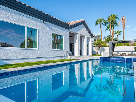 This FULLY FURNISHED, newly renovated 4 bedroom / 3 bath luxury home is located in an exclusive gated community and offers the ultimate blend of elegance, comfort, and tranquility. The property boasts a magnificent 14,000-gallon heated pool and spa, perfect for unwinding or entertaining in style. Inside, you'll find two electric fireplaces that create a cozy ambiance, alongside smart TVs throughout for seamless entertainment.