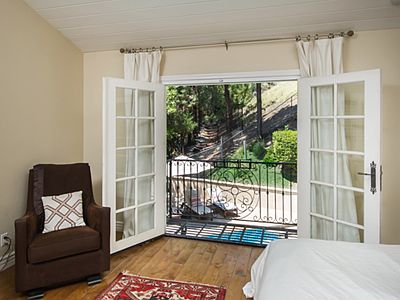 Located in one of BHPO's most desirable neighborhoods just minutes from Sunset Bl. This tranquil and private estate is situated on over half an acre and set far back from the street in a spectacular setting surrounded by mature landscaping and stunning canyon views. A long, gated tree-lined driveway leads to a motor court and the dramatic entry of this spacious Mediterranean estate. A sky-lit entry opens to an oversized living room w/ frplc and vaulted ceiling. A state-of-the-art kitchen features Miele stainless steel appliances, a Sub-Zero refrigerator and European cabinetry. A formal dining room, bonus/family room and one bed/bath are featured on the 1st level. The 2nd level includes 2 bedrooms plus a wonderful master suite w/ vaulted ceiling, frplc and terrace. Additional features include H/W floors, beautifully crafted wood doors thru-out, security system, sauna and French doors which open from most downstairs rooms to the beautiful grounds and pool which are perfect for entertaining.