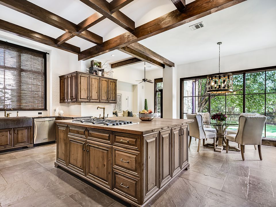 Located in the heart of Tarrytown, this 5 bed/4.5 bath custom home features a spacious floor plan complemented by high, sweeping ceilings, impeccable hardwood flooring, stone accent walls and rustic wood beams. Designed by Jim LaRue and built by Sam Stewart, this masterpiece was featured on the American Institute of Architects Tour for its exceptional quality. The main level comprises a gourmet kitchen with large center island that opens to the breakfast area and family room, as well as a formal dining room, wet bar, living room, expansive master suite, and cozy study with fireplace. Beautiful French doors open from the living area to the generous fenced backyard and covered patio. Situated upstairs are four guest bedrooms with an additional living area. Other noteworthy features include: a gated back entrance and motor court, and a copper roof, siding and gutters.