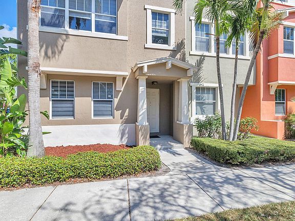Beautiful 4BR/3.5BTH end unit townhome overlooking tree covered tranquil park like setting, in the center of West Palm Beach! Covered entry, large foyer & first floor bedroom with ensuite bath. Stairs lead to the main living area with enormous light filled living room high ceilings, large bright windows & wood floors throughout. Gorgeous kitchen with granite countertops, stone back splash, shaker cabinets & breakfast bar open to the dining room. 2nd floor powder room. Upsatirs features the primary bedroom with a large ensuite bath, double vanity and spacious closet. Plus 2 additional conjoined bedrooms & another full bath. Tastefully upgraded throughout & all impact windows. Large oversized garage with extra storage. Close proximity to The Square (CityPlace), Tanger Outlet Mall, I95,& PB