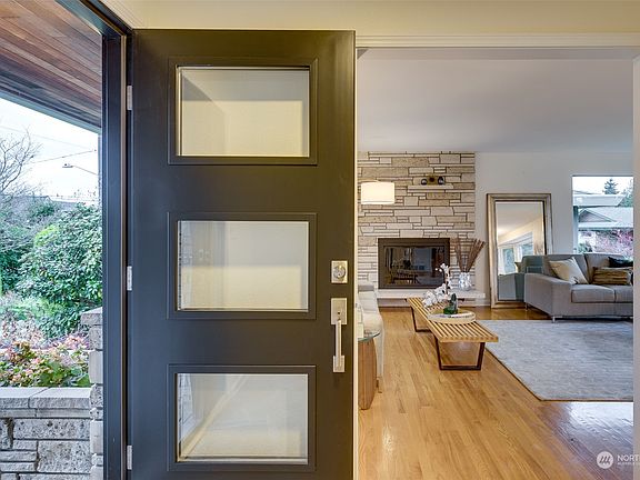 NEW PRICE! Immaculate North Beach 4 Bedroom/2.5 Bathroom View Home. Traditional one story with daylight basement and updates throughout. Formal entry, hardwood flooring, large living room with views, wood burning fireplace, remodeled kitchen w/gas island cooktop, stainless steel appliances and granite countertops. Open and bright circular floor plan, remodeled bathrooms, newer light fixtures and California Closets. Spacious daylight basement with built-in cabinetry, gas fireplace and opens to professionally landscaped yard. Solar heating, AC, copper plumbing, large utility room, updated electrical, heat pump, newer roof, oversized 2 car garage w/shop area and so much more. Minutes to Carkeek Park, bus line, restaurants & downtown Ballard.