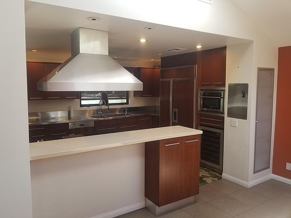 Large, open living room/family room areas, dining area and kitchen with custom bar stool seating and built in breakfast nook. Beautiful upgraded window shades throughout the home. Hardwood floors and tile throughout the home. Plenty of space to create one or more offices either downstairs, overlooking the front yard or upstairs in the master bedroom. You could also use the deck off the master bedroom and work outside. All 3 bedrooms are upstairs. High end appliances throughout including Sub Zero refrigerator and separate wine fridge. Custom bonus room that can be used for an office or as a dog room. It has stainless steel doors and its own doggie door. Custom gate on stairway to keep a dog downstairs if desired. Custom Control4 Home Automation system Audio-Visual system controls speakers, TV's, A/C, and spa through your phone. Large back yard with pool, spa, outdoor kitchen (with marble countertops, and wood fired oven. Great for entertaining. The Living room wall opens with accordion doors collapsing to open the home to the patio with a built-in heater and a outdoor gas fire feature. Lush landscaping. Gardner, Pool cleaning service and water (up to $500 value) included.