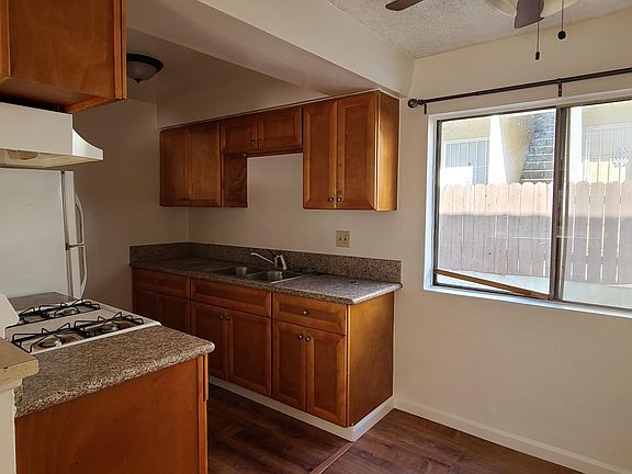 2 bedroom first floor unit with 1 reserved covered parking space. Kitchen comes with a stove and exhaust hood. Bright unit with great natural lighting and freshly painted walls. All floors are updated luxury vinyl tile. Shared laundry facility on site. Landlord pays for water and trash. Tenant pays for electric and gas. No Smoking. No Pets. Includes 1 reserved covered parking space and storage.
