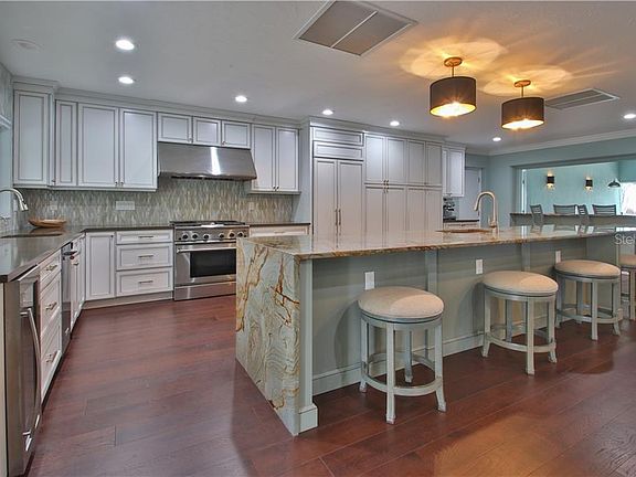 This gorgeous home is located in one of the most desirable neighborhoods in Bradenton. This direct waterfront home was completely renovated from top to bottom in 2018. Attention to detail abounds in this amazing home, there is tremendous open water views, views of the green bridge, and a perfect place to watch the Christmas boat parade, and Fourth of July fireworks. This is located on sailboat water as well. An amazing kitchen with state of the art appliances make this a cook's dream, complete with quartz countertops and a granite island. This property also has two Master bedrooms one on the second floor and additionally one on the first. The design and beauty of the tile in the luscious and ample bathrooms, down to the rich wood in the beautiful floors make this a home to enjoy for years to come. This home has an open floor plan perfect for entertaining. Several sitting areas allow the outside to come on in to enjoy the gorgeous breeze off the Manatee River. Come and look at the perfect combination of an elegant yet casual environment to enjoy all that this beautiful Florida home as to offer. To top everything off is the pool, with a pebbletec finish, spa, and outdoor kitchen, the design is beyond, including travertine, cabana, woodburning pizza oven, continuing down the composite dock where you can have your boat on its 20000 lb boat lift. For extra comfort there is also included a gas generator, hurricane windows and hurricane sliding doors, and mosquito mist system in the backyard pool area. Come see everything this spectacular home has to offer.