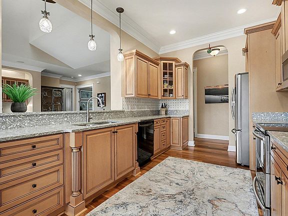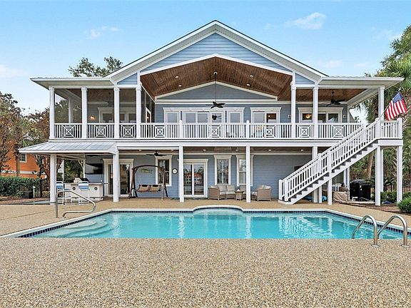 A rare lake-front retreat in Murrells Inlet, this five-bedroom home blends resort-style outdoor living with high-end interiors, a private dock, and easy access to beaches and the Famous MarshWalk. Designed for seamless indoor-outdoor living, the home offers both space and sophistication across two beautifully finished levels. Outdoor living is where this home truly shines. Enjoy a saltwater pool, expansive pool deck, outdoor fireplace, and an outdoor kitchen with grill—all overlooking the water. A private dock completes the setting, creating a peaceful backdrop for relaxing or entertaining. The residence features 5 bedrooms and 4.5 bathrooms, with high ceilings, abundant natural light, and thoughtful upgrades throughout. Brazilian cherry hardwood floors and tile flooring anchor the main living areas, while spacious gathering spaces on both floors make the home ideal for both everyday living and entertaining. A dedicated office with custom built-ins provides a perfect work-from-home setup. The main level split floor plan includes a private primary suite plus two additional en-suite bedrooms. The lower level offers two bedrooms connected by a Jack-and-Jill bath, a large seating area, and direct access through sliding glass doors to the pool deck. Additional features include an attached three-car garage, metal roof, plantation shutters throughout, motorized shades in the living room and back office, a custom master closet, updated cabinet hardware, custom cabinet in the rec room, and a custom desk in bedroom two. Notable upgrades also include an oyster shell chandelier, professional landscaping, whole-house water filtration system, whole-house surge protector, 3M window film, new pool decking from Coastal Stone Flooring, updated kitchen backsplash, an outdoor shade near the grill area, a new fence on the right side of the property, sprinkler system and regularly maintained clear-coated porch ceilings. A dock to launch your kayaks and paddleboards. Conveniently located with easy access to local beaches, schools, medical facilities, shopping and dining. This home offers the perfect balance of privacy, comfort, and coastal lifestyle. Don't miss your opportunity to see this home!