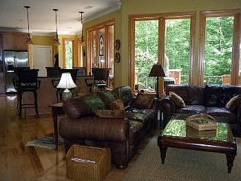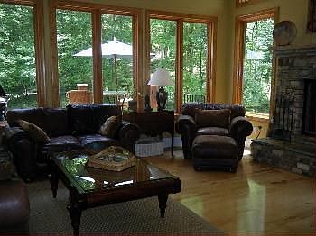 Spectacular home with remarkable craftsmanship, this house belongs in "Architectural Digest". Nestled on a ridge in the middle of almost 6 acres with streams in both front and rear of home. No doubt much thought and detail have gone into all aspects of this home, making it "one of a kind". The kitchen with beautiful warm, shaker style cabinetry, stainless steel appliances, granite counter tops and walk - in pantry is open to a warm living room surrounded by windows with wooded, private views of property. Large mountain stone wood-burning fireplace (with gas starter, easily converted to gas logs) help create a wonderful setting for ease and comfort of everyday life. Enjoy working in your office with this spectacular view. Maple floors throughout add beauty yet are easily maintained. The Master Suite on the main level with a gorgeous river rock laced tile shower and matching soaking tub create a sense of peace and serenity. Owners have installed prairie grill high-end energy efficient windows and doors throughout. The 9ft ceilings add an openness to both floors. Downstairs enjoy the acid stained floors, 2 bedrooms, 1 bath with separate family/media room and enjoy the house-hold sound system with surround sound. Or if you prefer the outdoors, you will love the huge outdoor living space which is perfect for entertaining. There is additional unfinished lower floor square footage for extra storage. An impressive exterior of mountain stone, board & batten, rough sawn timbers & cedar shakes compliment the natural setting of this home. If you appreciate quality and have an eye for detail, this home is for you. The privacy and convenience only add to the attributes of this amazing rustic but elegant home.