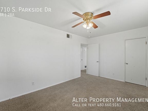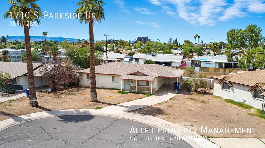 Welcome to 1710 S Parkside Dr in the heart of Tempe! This well-kept 3-bedroom, 1.5-bath home offers the perfect blend of comfort, convenience, and character. Just minutes from ASU, Tempe Town Lake, shopping, dining, and major freeways the location can't be beat. $1500 in rent for the first 2 months and rent increase to $1795 for 3rd month.
