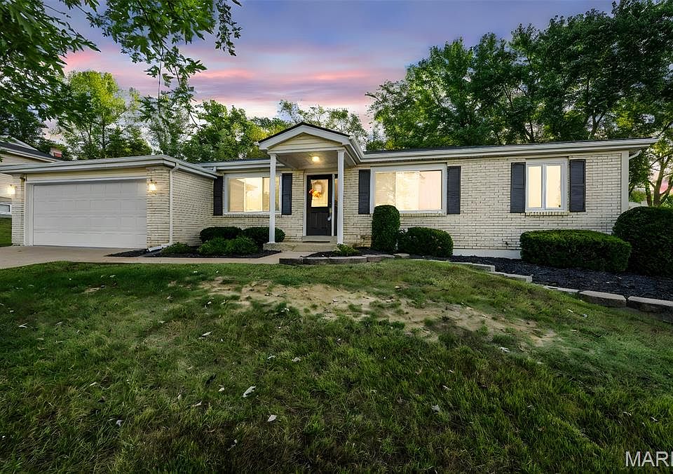 Welcome to this beautifully updated 3 bedroom, 2 bath home in Rockwood School District in Fenton just off hyw 141 near Gravois. The home features an open divided floor plan with hardwood floors, a spacious primary suite on one side and 2 generous secondary bedrooms on the other. The kitchen is updated with stainless steel appliances and tile backsplash. The open floor plan offers ample living space and includes a wood burning fireplace. There is a walkout to the large patio and fenced yard. Both baths have been tastefully updated. For added convenience the spacious laundry room is off the kitchen. Partially finished lower level has a rough in for a fill bath, adds additional living space and a bar and pool table for entertainment. Plenty of storage space. Enjoy peace of mind with a new roof and gutters as well as other major system updates.