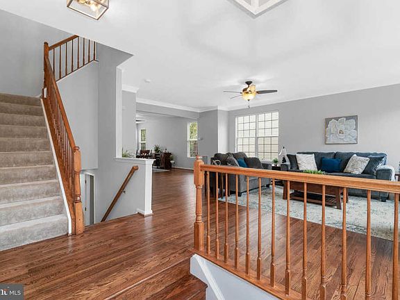 Pristine brick-front 3BR/3.5BA End Unit Townhome with 2-car garage tucked away in a quiet enclave of 38 homes in Herndon's Towns at Stuart Pointe. Pride of ownership shows throughout this Carr Homes Eliot model with open floorplan, 9' ceilings and 3 levels of bumpouts with nearly 2100sf of room to roam. Gleaming refinished hardwoods on main from the welcoming foyer and stairs through the sunny living room with crown molding, dining area and family room currently used as a dining room. Updated eat-in kitchen with SS Appliances, granite countertops on perimeter and convenient island bar, pendant lighting, maple cabinets, and ceramic tile floor, plus new sliding glass door to the refinished wood deck. The upper level features a spacious primary suite with vaulted ceiling, two large walk-in closets, new ceiling fan, and en-suite primary bath with separate tub and shower, ceramic tile, and dual sink vanity. Two large secondary bedrooms with ceiling fans, ceramic tile hall bath, and laundry area with washer and dryer round out the upper level. Half bath en route to the finished walk-out lower level featuring a rec room, full bathroom with tub shower, cozy gas fireplace, alcove for additional seating and sliding door to the serene fenced rear yard and paver patio. All new paint throughout and brand new carpet with quality pad on upper level and stairs to UL, plus insulated garage door, recessed lights, new rear deck door, and updated light fixtures. Side and front lawn maintenance is included. Conveniently located just off Fairfax County Parkway close to Metro, Reston Town Center, Toll Road, W&OD Trail, the Town of Herndon, shopping and parks.